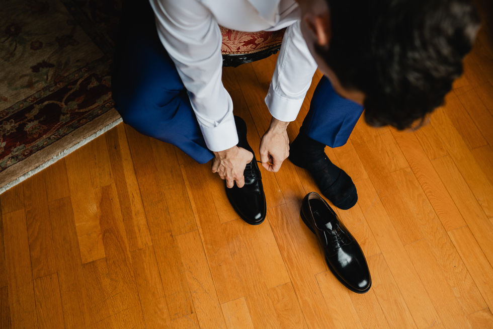 La mañana comenzó en Zumaia, con ambos novios preparándose en casa, cada uno en su espacio para mantener la sorpresa hasta la ceremonia.